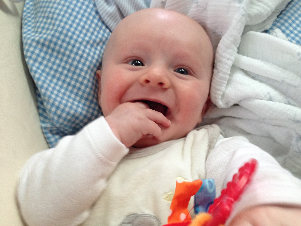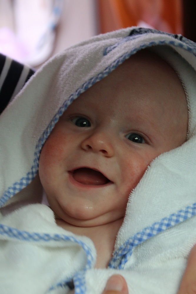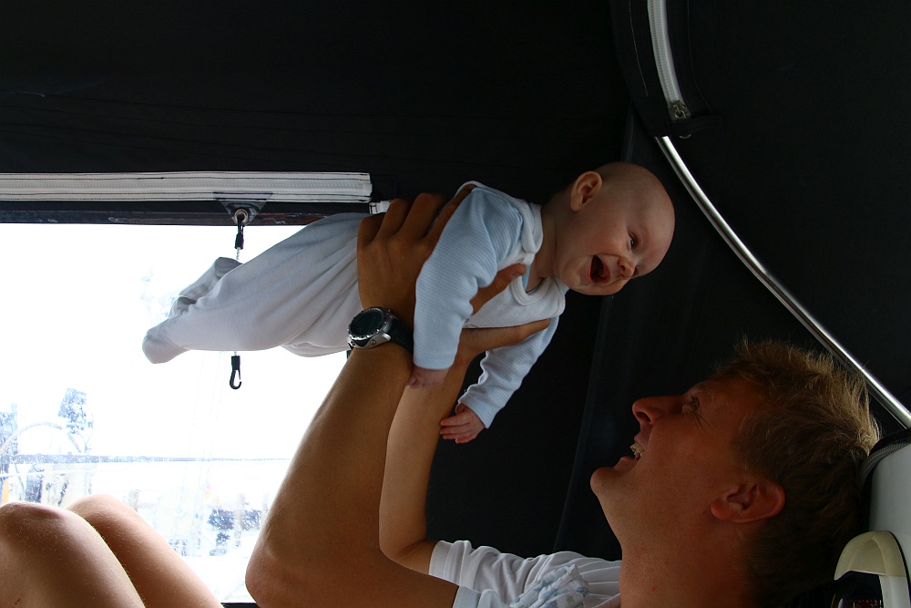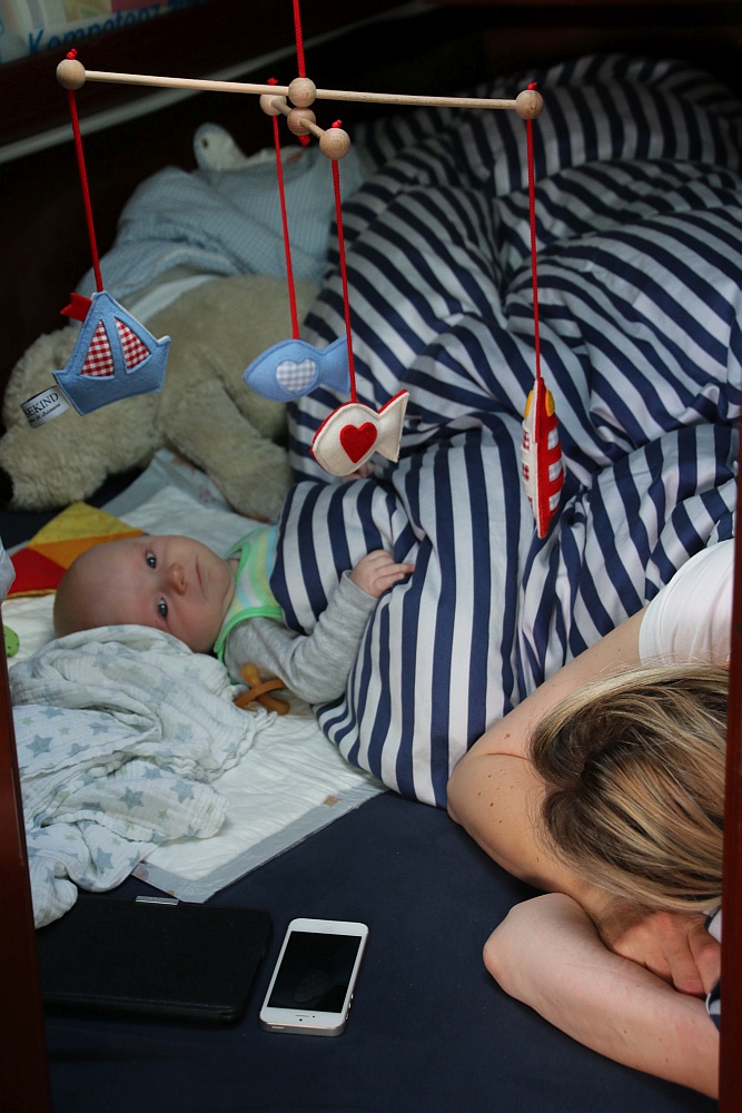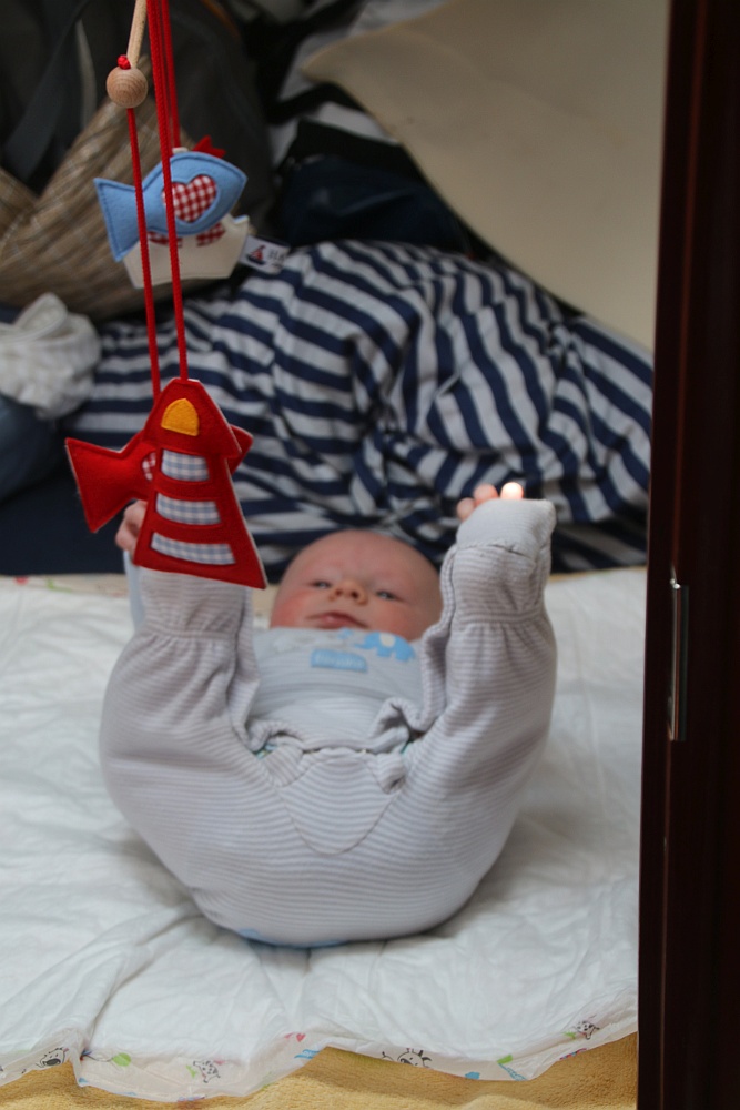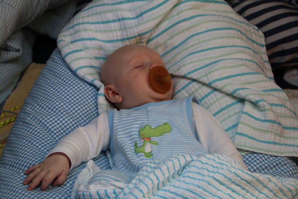Finn hat heute nämlich „Nerv-Tag“, d.h. er erprobt wie er uns am besten noch den letzten Nerv klauen kann. Der Tag fing schon schlecht an, um 3 Uhr in der Nacht und um 4:30 Uhr weckt Finn uns mit Schreianfällen. Wir durften dann zwar noch bis 7 Uhr weiterschlafen, dennoch sind wir gerädert. Mitten in der Nacht aufstehen, trösten etc. sind wir von unserem Schläfer sonst so gar nicht gewöhnt. Leider bessert Finns Laune sich auch über sen Tag nicht wirklich. Er ist extrem quarkig. Vielleicht kündigt sich ein neuer Zahn an?