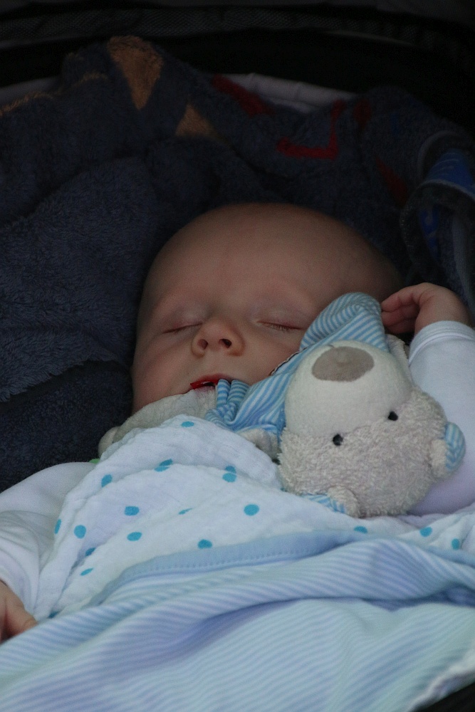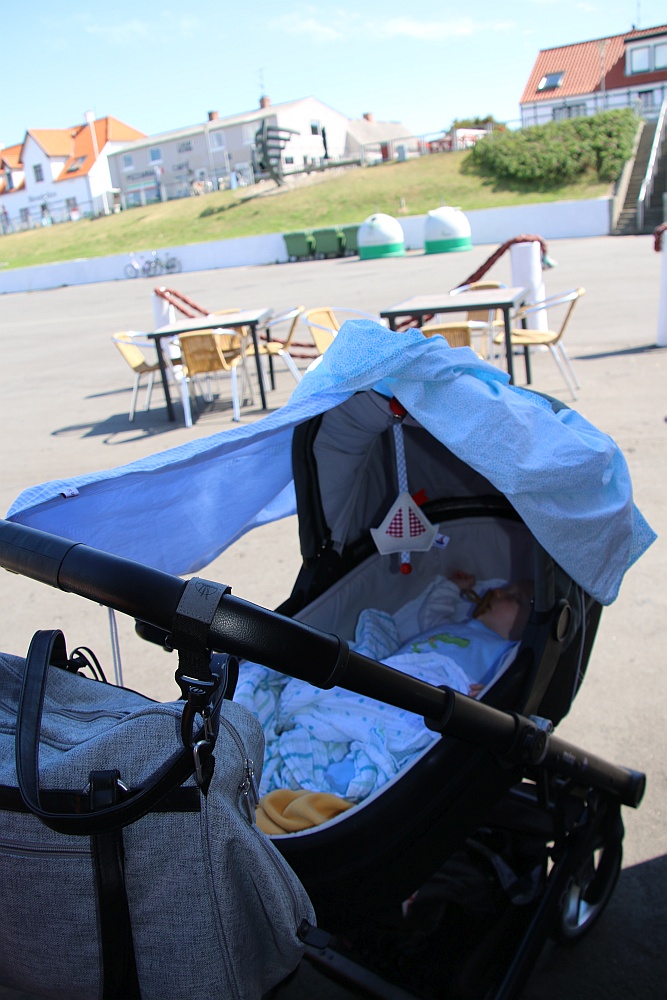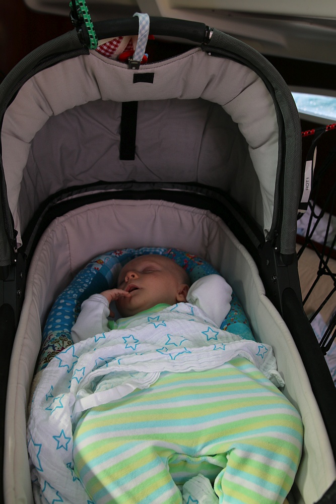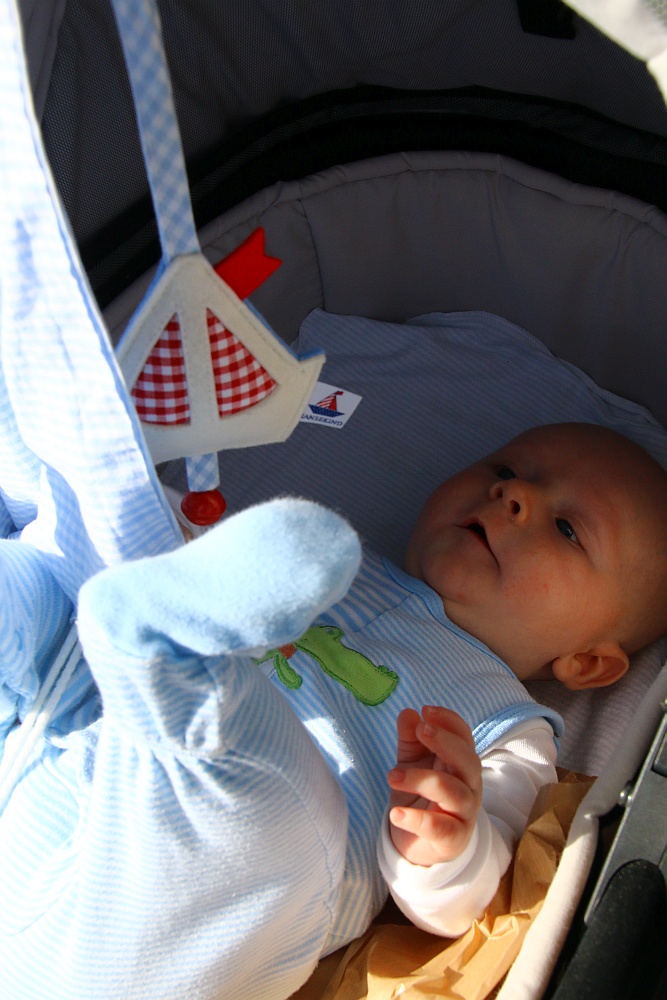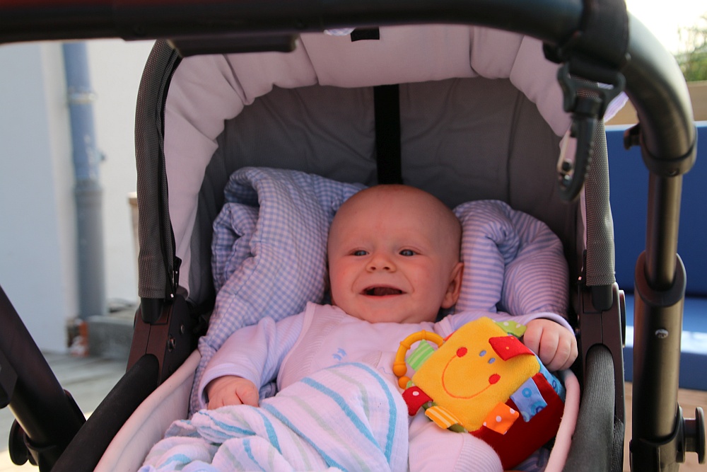Zum Glück ist Finn im Kinderwagen seelig und ruhig.