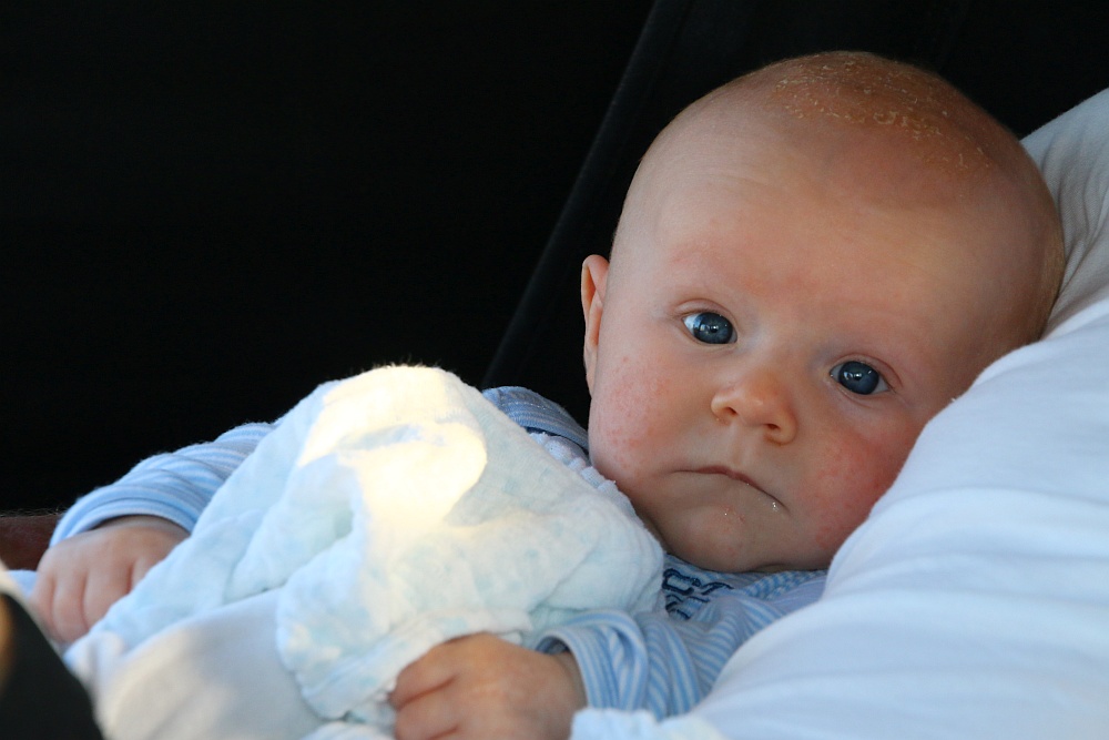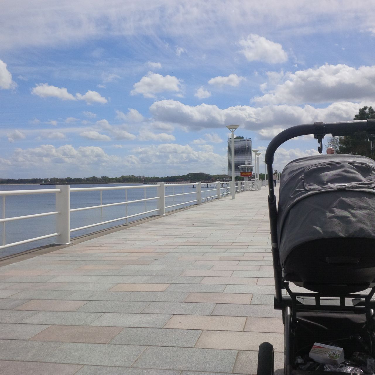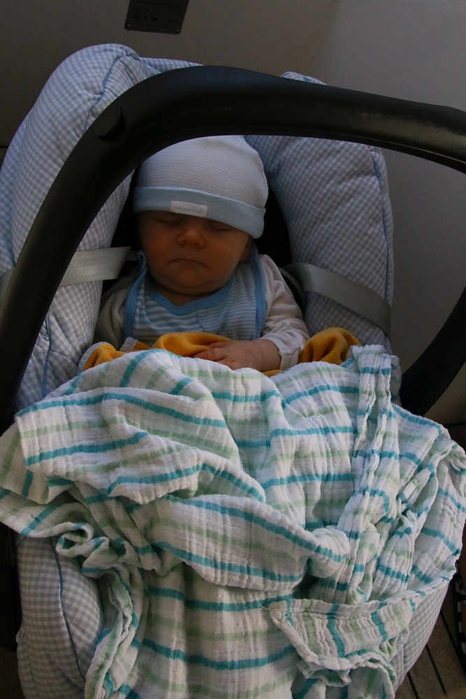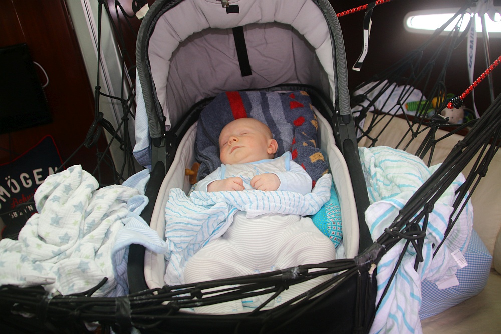 Zum Glück ist Finn im Kinderwagen seelig und ruhig.