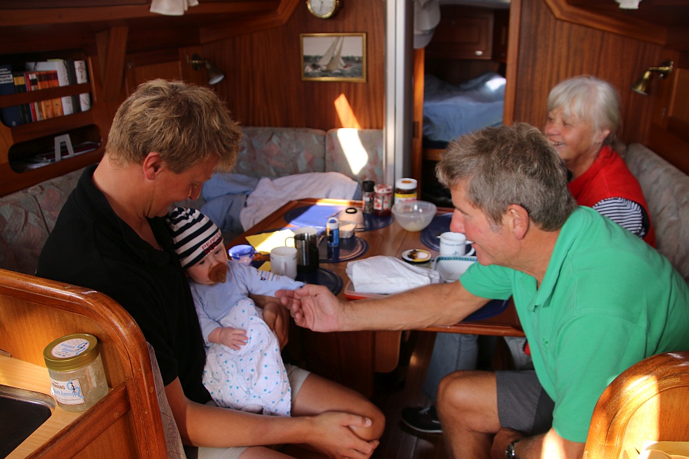 Wir verabschieden uns daher von unseren lieben Liegeplatznachbarn der SY Möwe in Kyrkbacken. Es wäre schön, wenn wir uns noch einmal Wiedersehen würden. Die Beiden haben Finn, den sie den kleinen „Ja-Ja“ getauft haben (Finn plappert nämlich aktuell ständig ja-ja-ja…), so sehr ins Herz geschlossen. Wunderschön zu sehen.