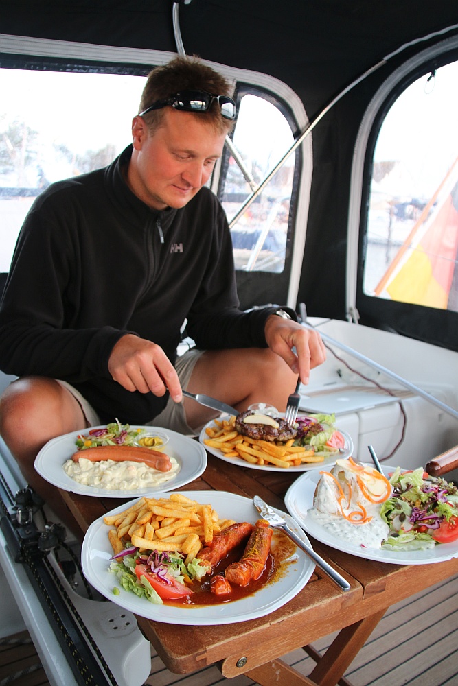 Wieder am Boot angekommen gibt es für uns alle noch Abendbrot und wir sind froh, dass es „Finn-Bett-geh-Zeit „ist. Wir hoffen, wir sehen ihn erst Morgen früh um 7Uhr wieder, idealer Weise wieder mit seiner sonst so ansteckenden, guten Laune.