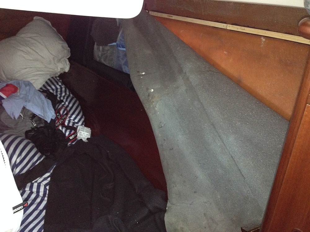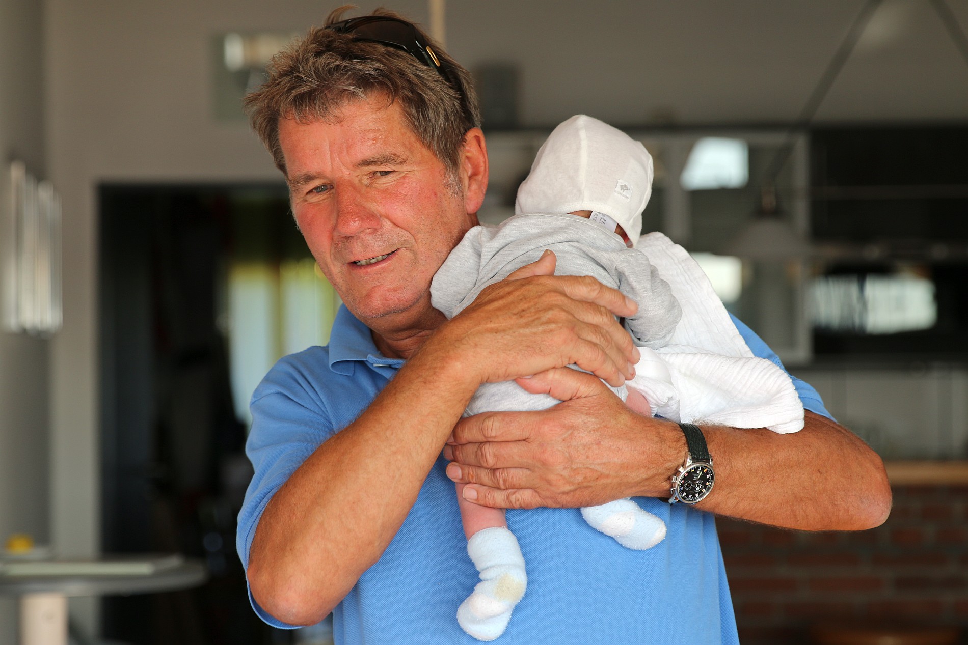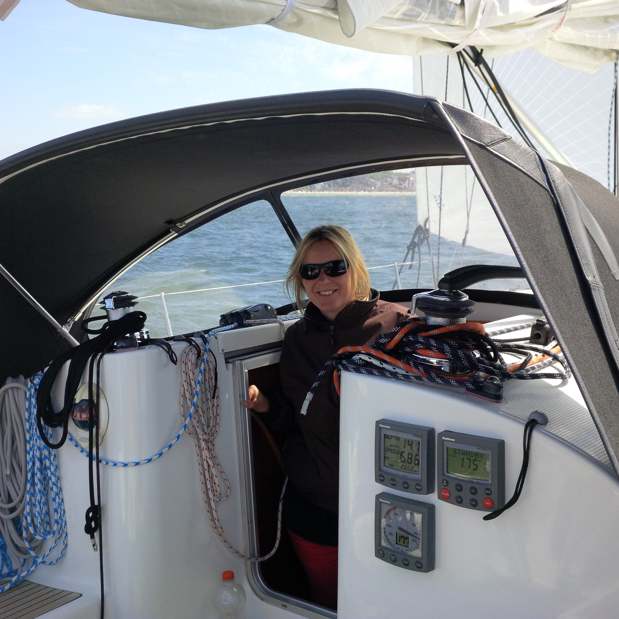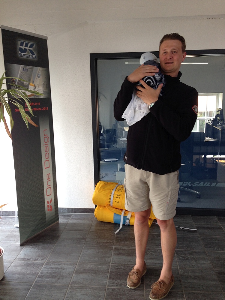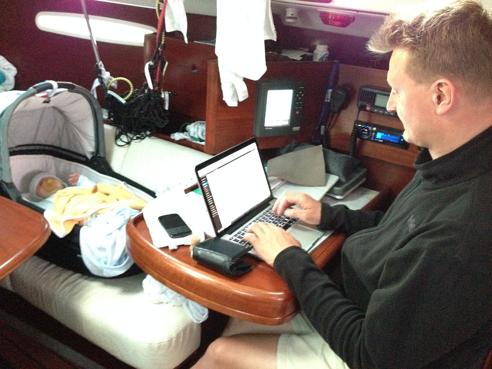 Finn wandert im gleichen Zug vom Cockpit wieder zurück in seine kardanische Aufhängung unter Deck. Sein Gesichtsausdruck bleibt dabei unverändert fröhlich.
