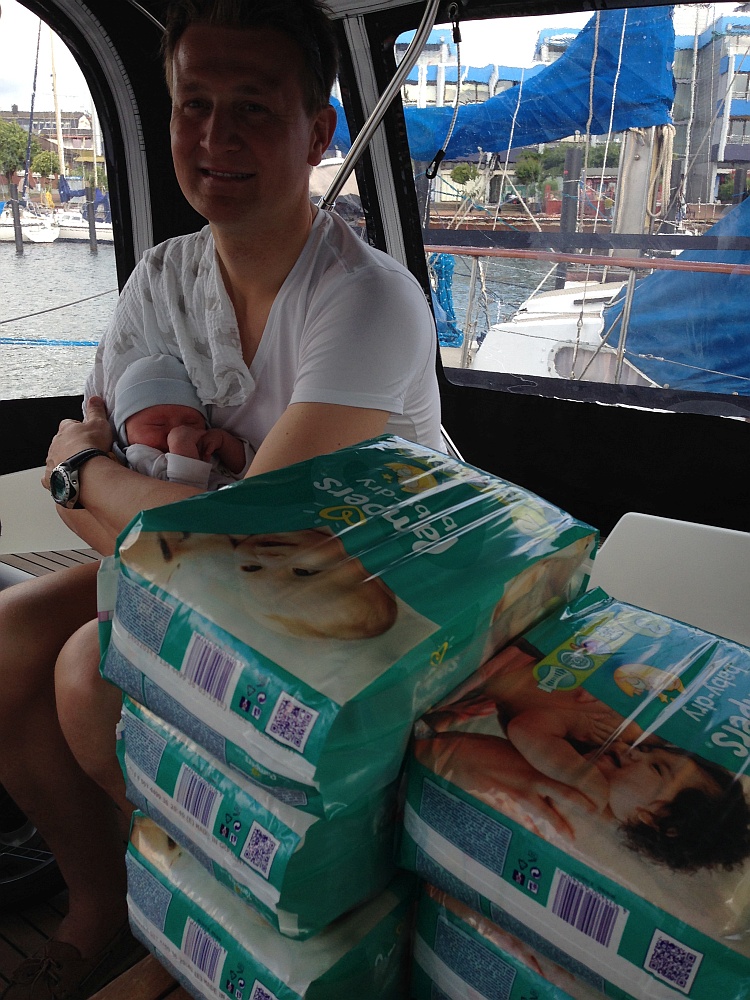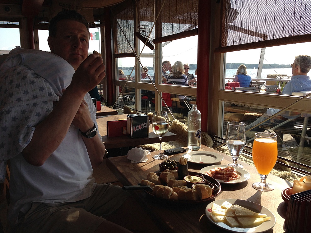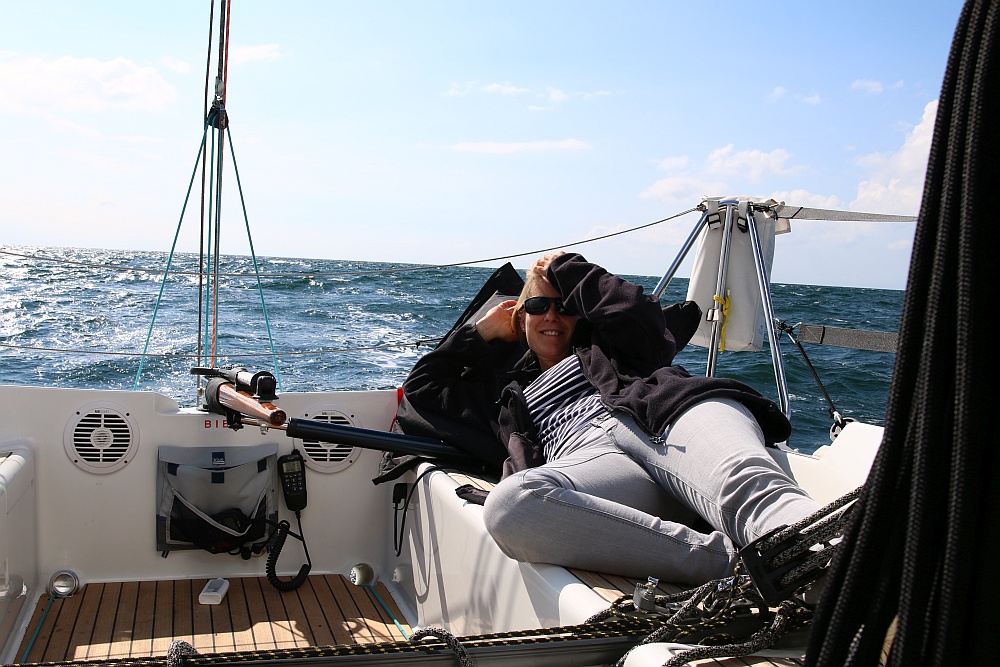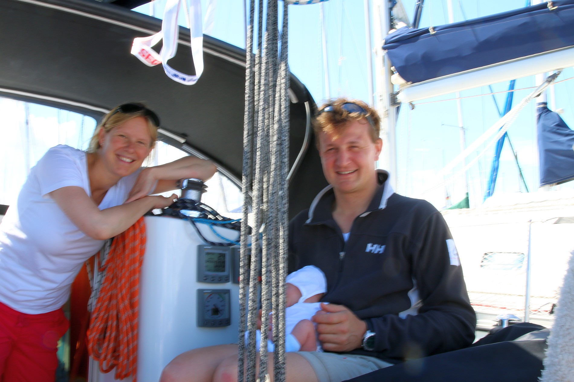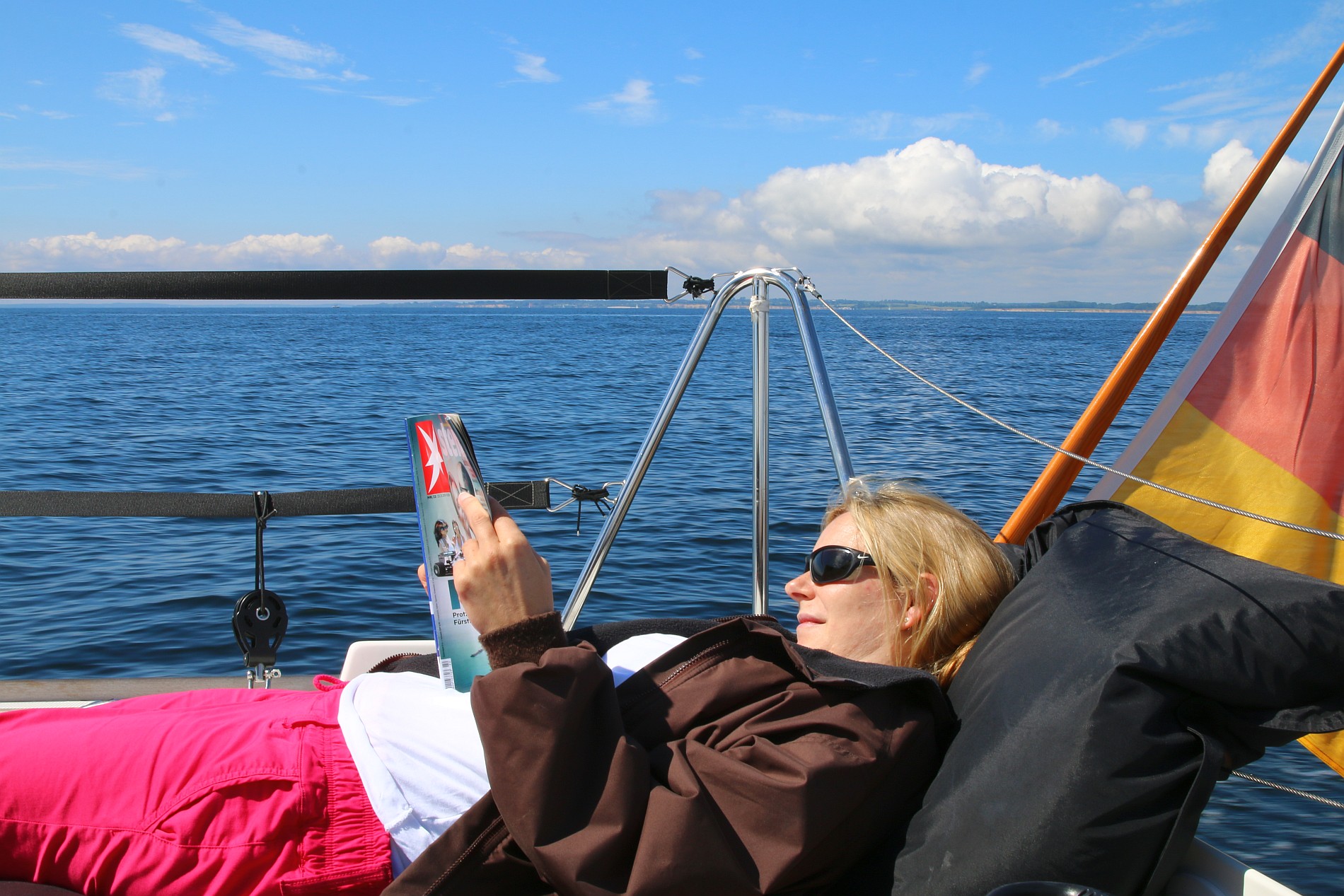 Lars beginnt den Tag mit einem Bad in der Ostsee, im Anschluss gibt es ein leckeres Frühstück im Cockpit – das Baby schläft immer noch :o) Zum ersten dänischen Frühstück gehört für mich: