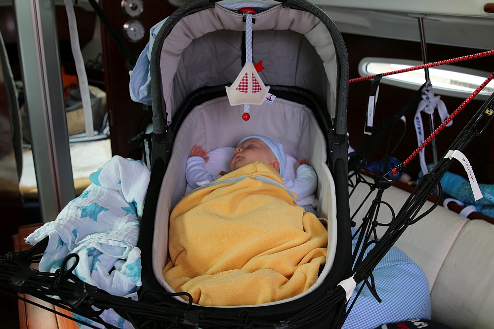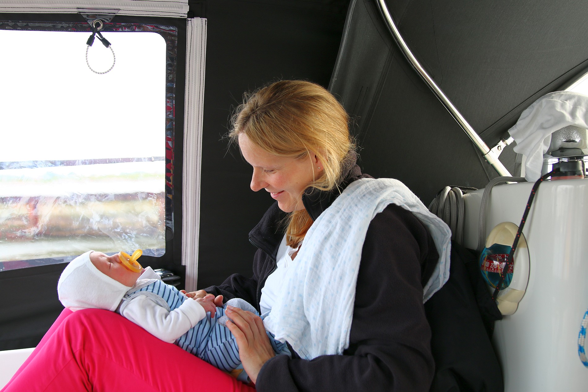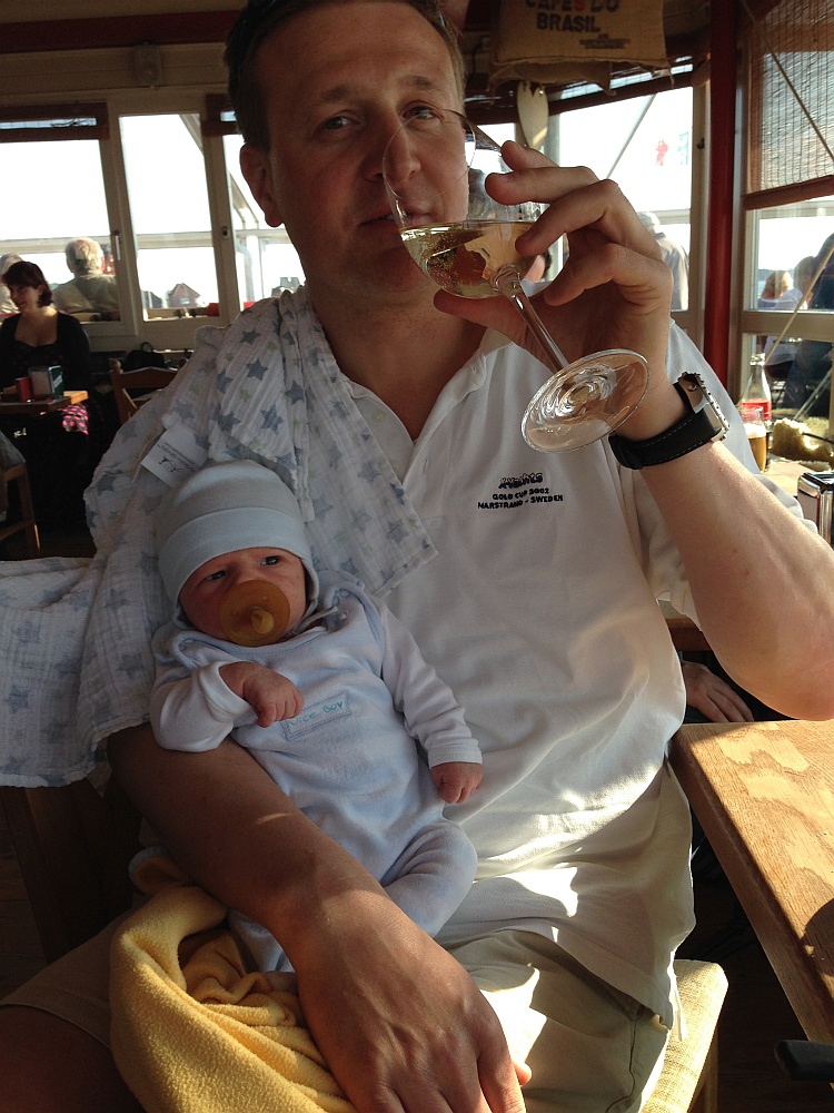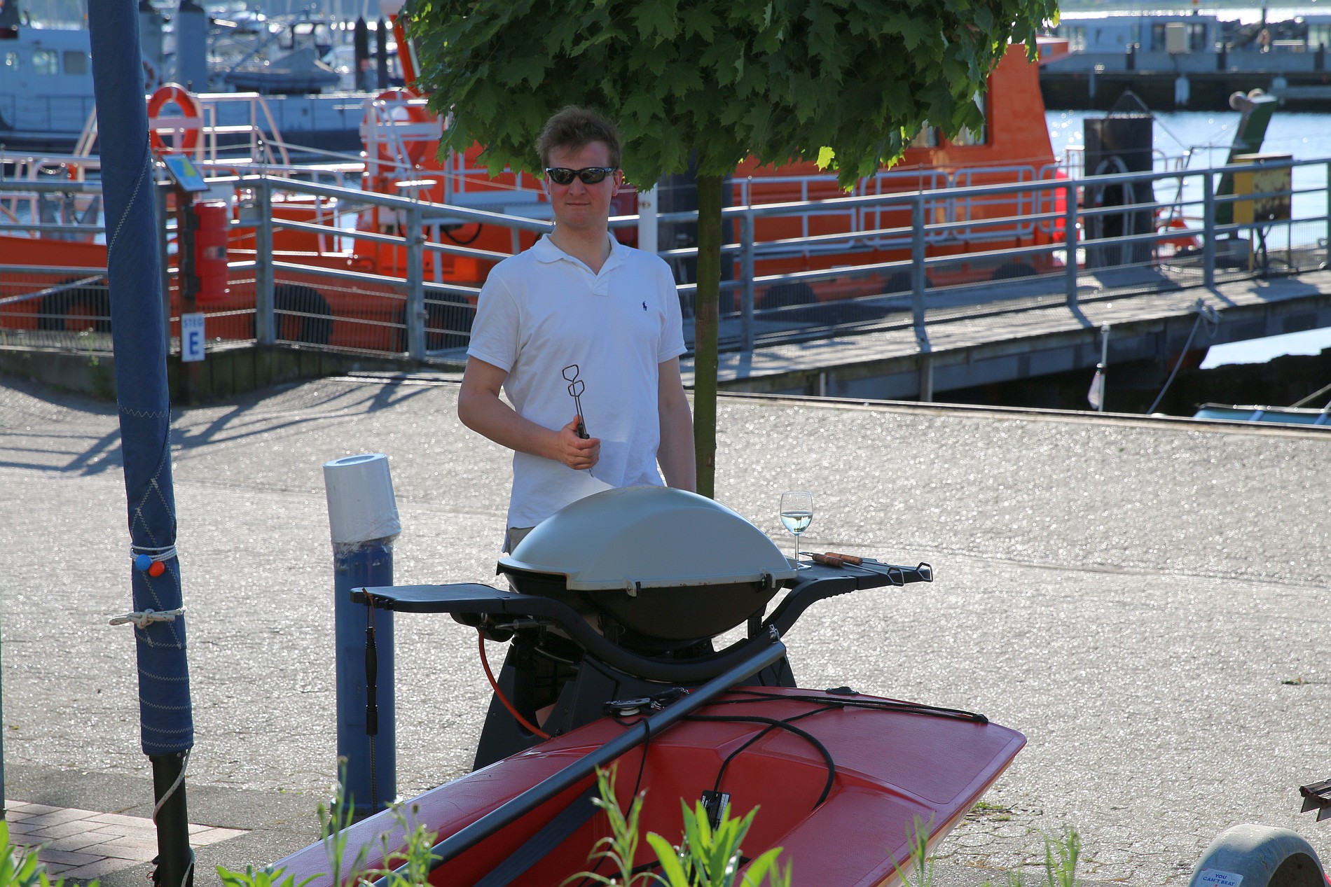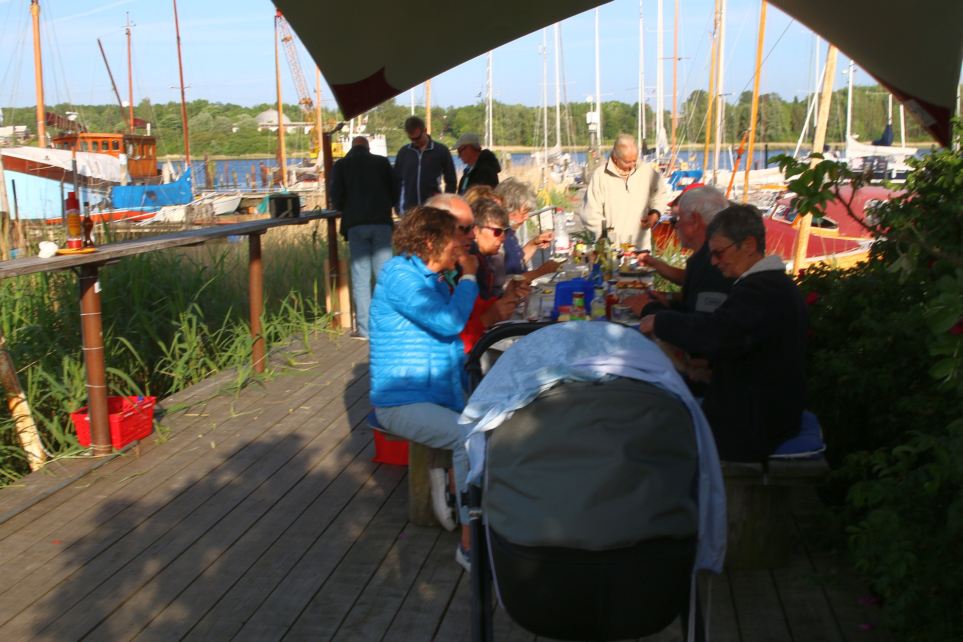Lars beginnt den Tag mit einem Bad in der Ostsee, im Anschluss gibt es ein leckeres Frühstück im Cockpit – das Baby schläft immer noch :o) Zum ersten dänischen Frühstück gehört für mich: