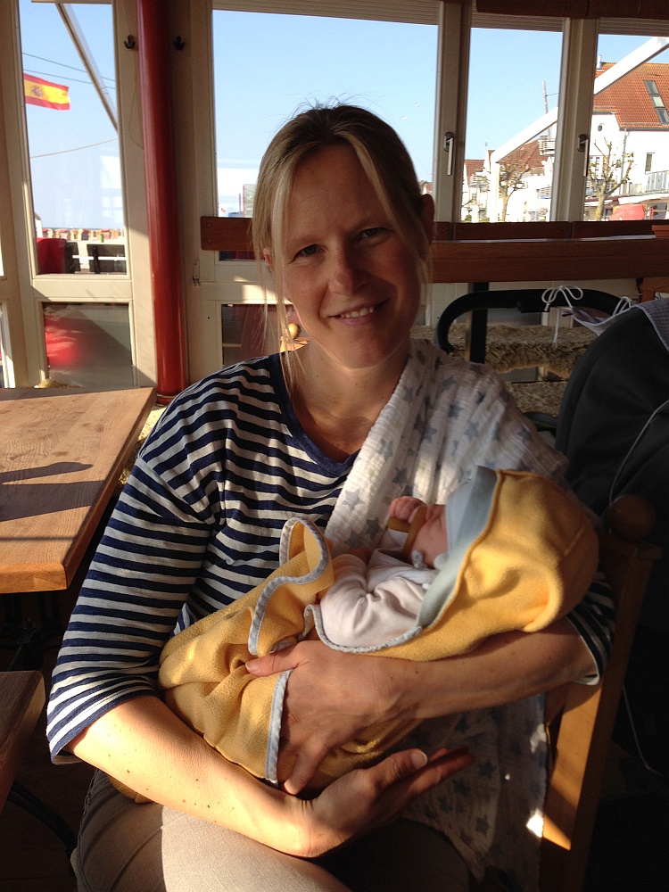 Ich bin heute zum ersten Mal der Frühaufsteher bei uns. Es hat sich das schöne Ritual eingependelt, dass Lars Finn mit zum Kuscheln an seine Seite nimmt nach dem Stillen am frühen Morgen. Normalerweise nutze ich die Zeit, um noch einmal tief und fest zu schlafen (ohne ein Ohr bei Finn *zwinker*). Heute war ich top fit (Finn hat mich sechs Stunden am Stück schlafen lassen), so dass ich gut gelaunt zur Dusche, weiter zum dänischen Kaufmann und zurück durch die langsam erwachende Ferienhaussiedlung gewandert bin. Herrlich!