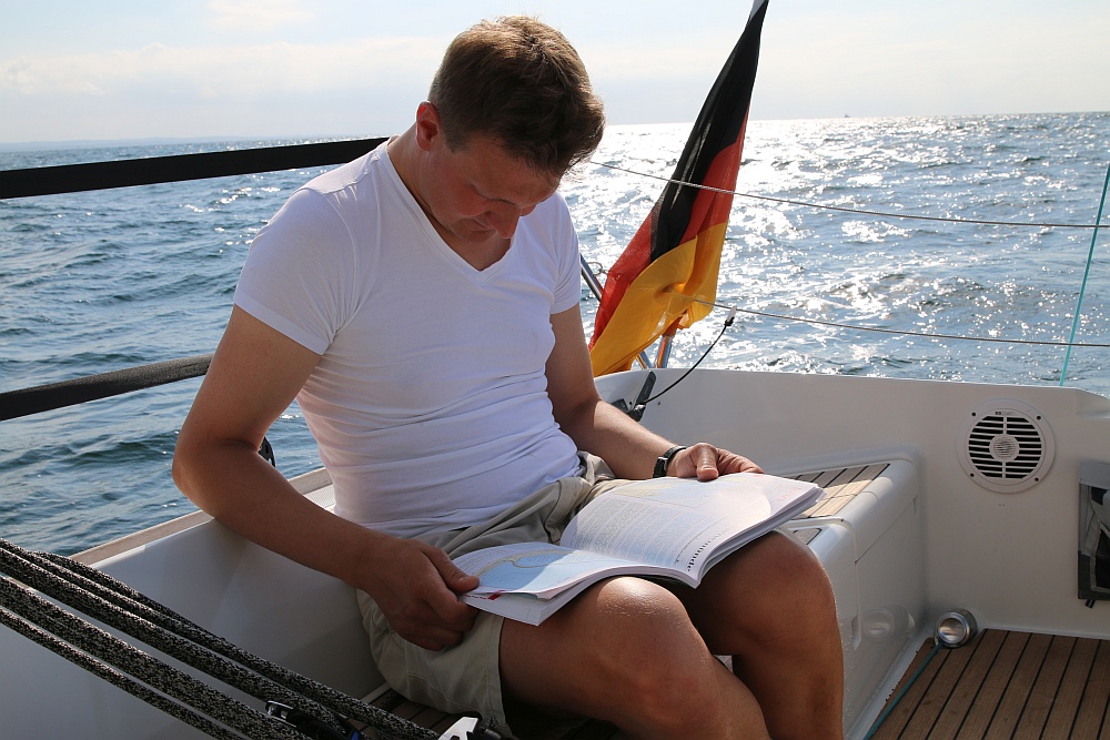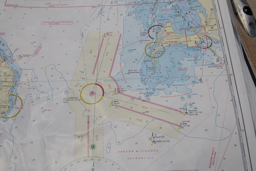 Auf See wälzen wir die Seekarten. Bis Rødvig (unser eigentlich angedachtes Ziel) sind es 19sm. Wir könnten auch nach Skanör (einer der Lieblingshäfen meiner Eltern – dort gibt es tolle Golfplätze). Wir entscheiden uns für die 27sm nach Skanör.
