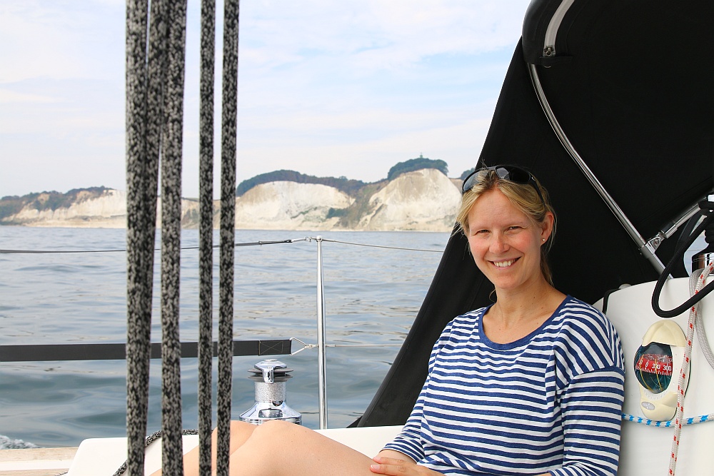 Sobald wir um die Ecke gebogen sind, stellen wir fest, dass der Wind durch den Cap-Effekt stärker war als er auf See eigentlich ist. Wir haben einen schönen Blick auf die Kreidefelsen, aber leider (noch) keinen segelbaren Wind. Gutes Wetter und seine Schattenseiten ;o)