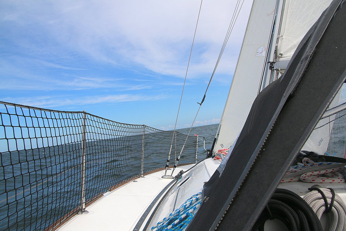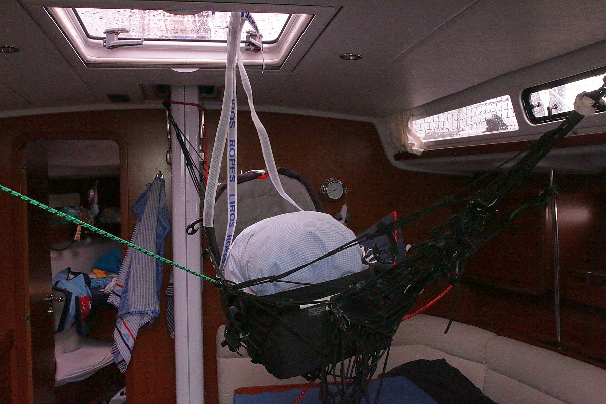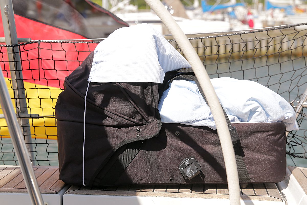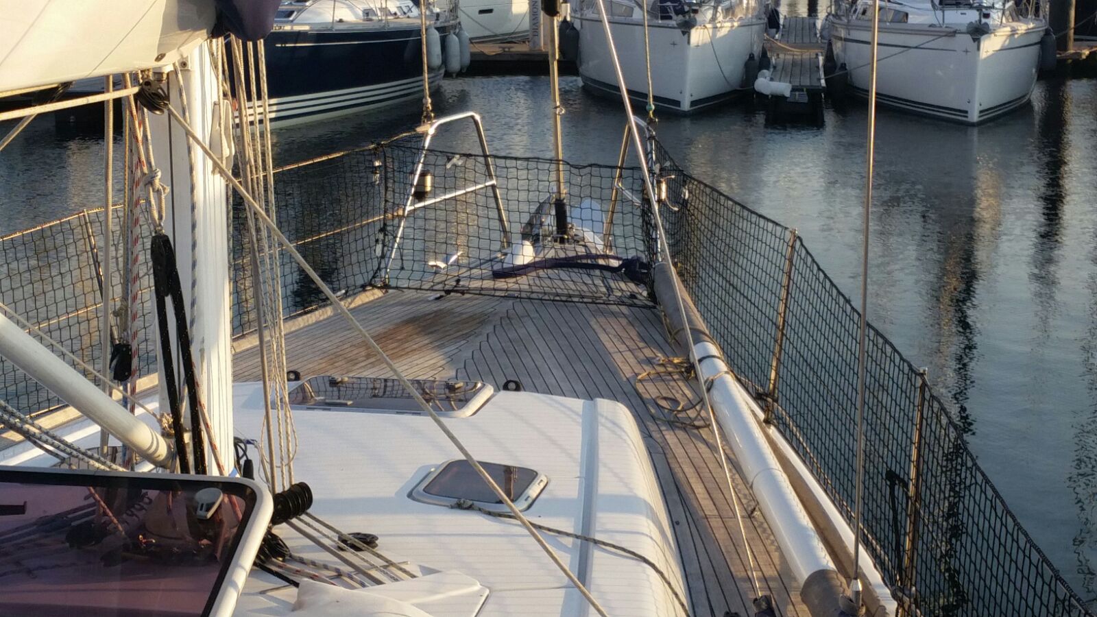 Darüber hinaus hat Lars auch bei der Großen schon ein Relingsnetz montiert, damit wir uns mit unseren (bald) zwei Kindern vom ersten Tag an sicher an Bord bewegen können: