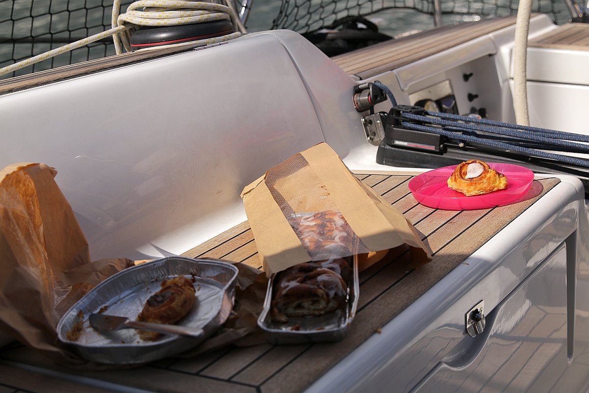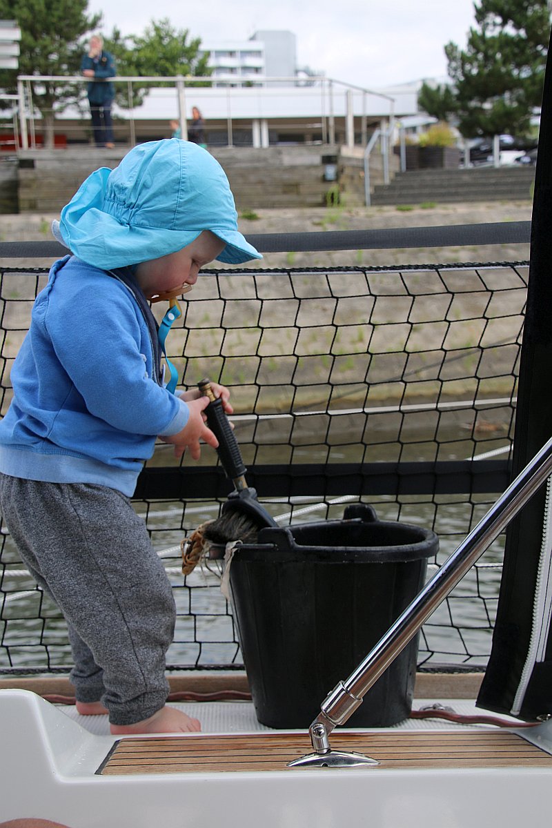 Lars hat das Schiff segelfertig gemacht, während ich Finns Geburtstag am 11.05. zu Hause vorbereitet habe. Es war wunderschön zu sehen mit welch einem Strahlen im Gesicht Lars von unserem Schiff kam. Die First 31.7 ist toll, keine Frage!