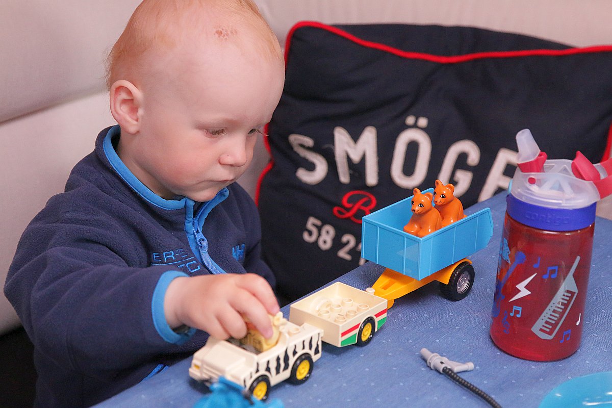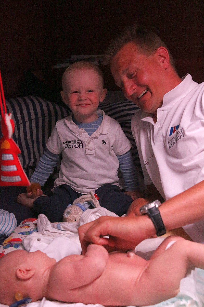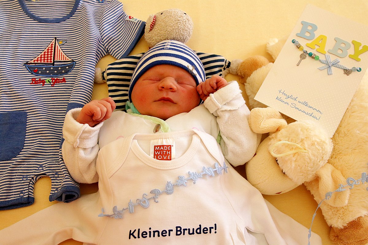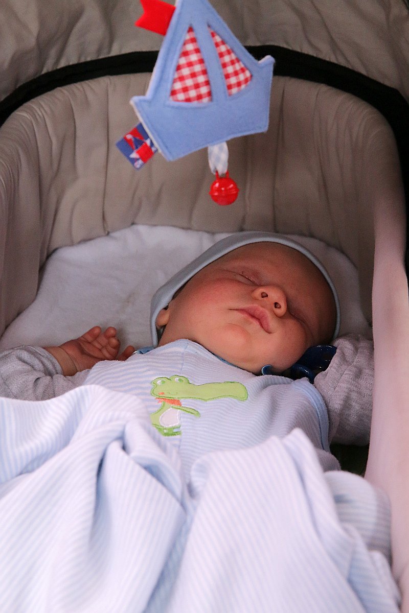 Auch Finn hat schon erste Tuchfühlung mit dem neuen Familienmitgleid aufgenommen: