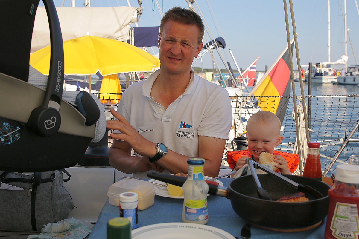 Gern möchten wir mit unserem neuen Familienmitglied (= Finns kleinem Bruder – Stichtag für seine Ankunft ist der 08.06.2016) die ersten Lebenswochen wieder auf See verbringen. Für uns gibt es keinen schöneren Ort für eine entspannte, intime, erste Lebenszeit als etwas größere, neue Familie. Diese Erfahrung soll auch das neue Familienmitglied machen können und Finn hat die Möglichkeit ebenfalls ganz dicht bei uns zu sein (Papa, Mama und Bruder in Sicht- und Rufweite, aber einen großen Freiluft-Abenteuer-Spielplatz drum herum). Soweit der Plan ;o)