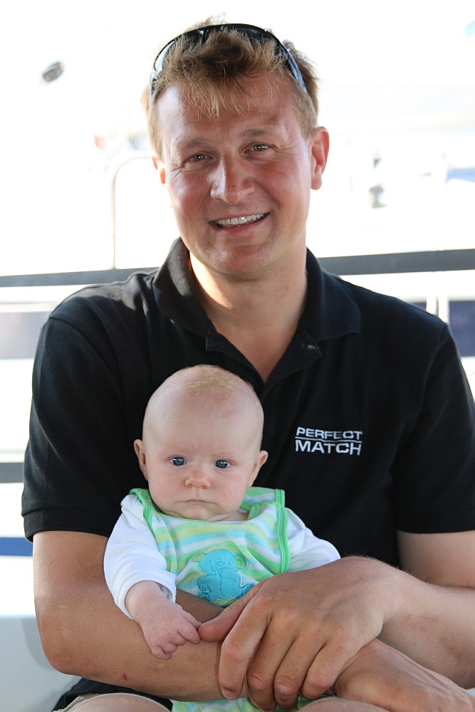 Ich verbringe heute viel Zeit mit Finn im Vorschiff. Draußen ist es einfach zu warm und zu sonnig für den kleinen Kerl. Er bekommt so seinen „privaten“ PEKiP-Kurs. Wir üben das Drehen von der Bauch in die Rückenlage. Es klappt in beide Richtungen, mittlerweile auch mit Windel *freu*