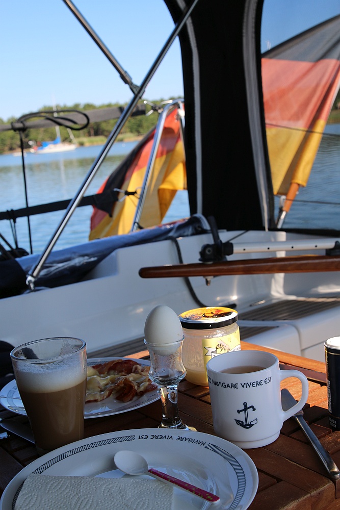 2. Frühstück = noch ein Kaffee, Ei, leckere Brötchen…