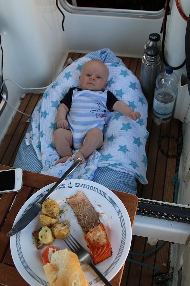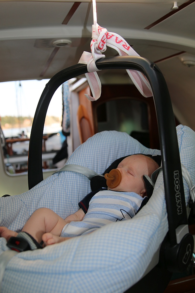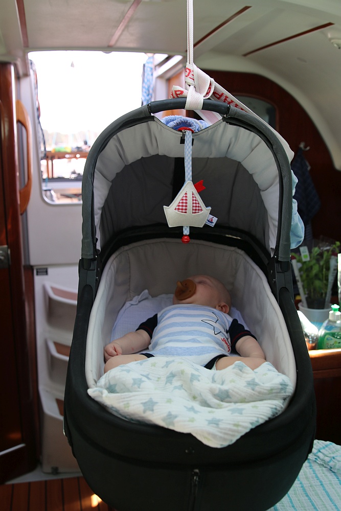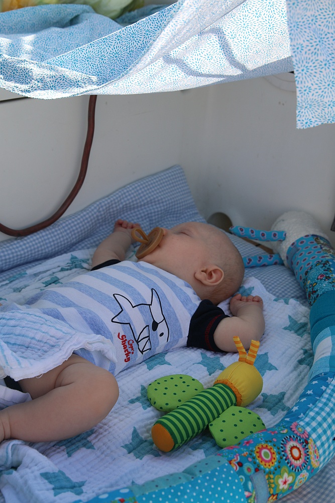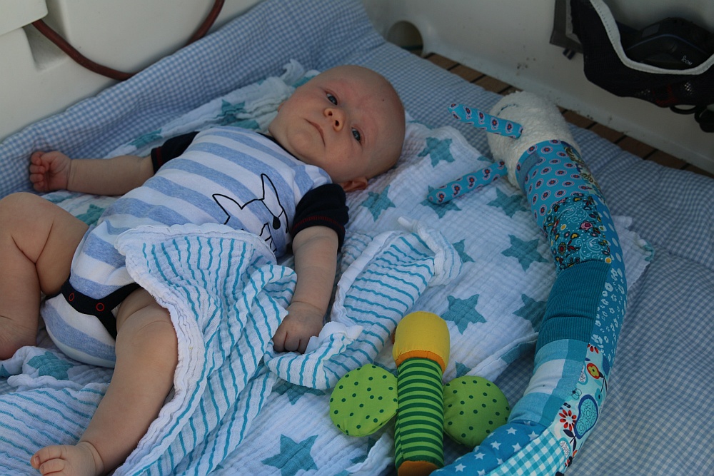 Als Finn sein erstes Abendschläfchen unter Deck hält