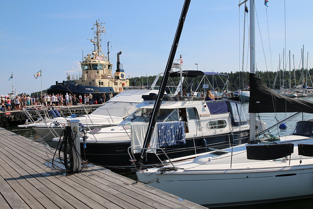Als Finn wieder fit ist machen wir uns auf den Weg, um Euch Nynäshamn näher zu zeigen (wegen der Hitze beschränken wir uns zunächst auf den Hafen).