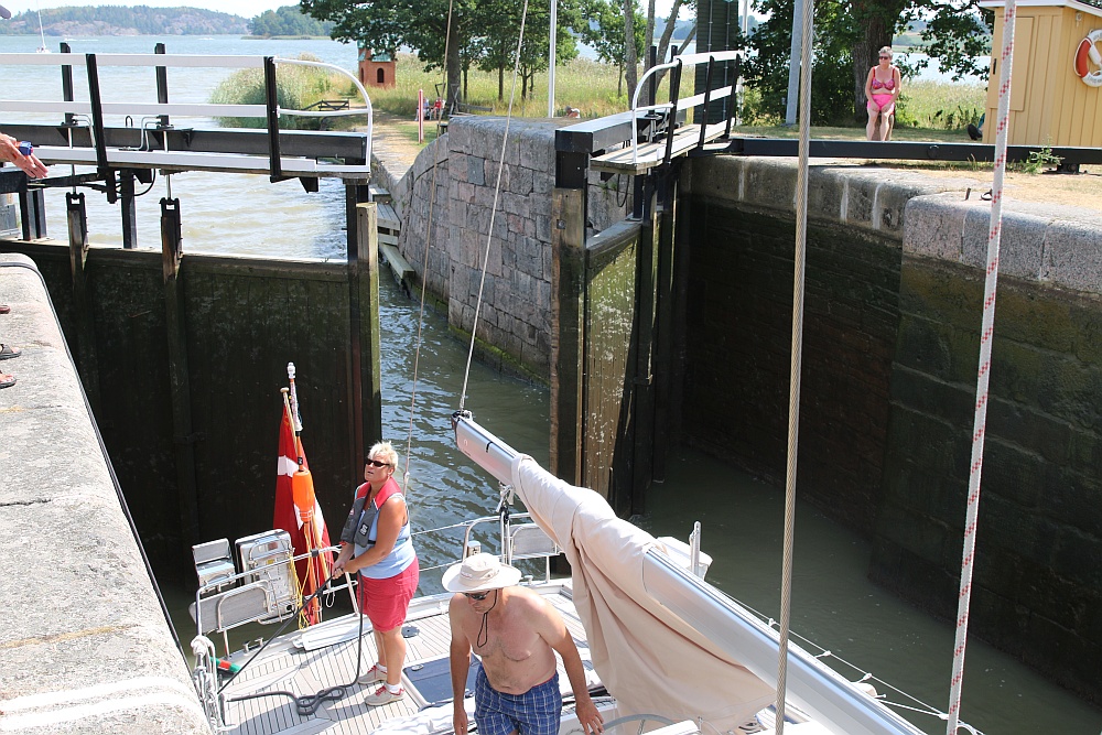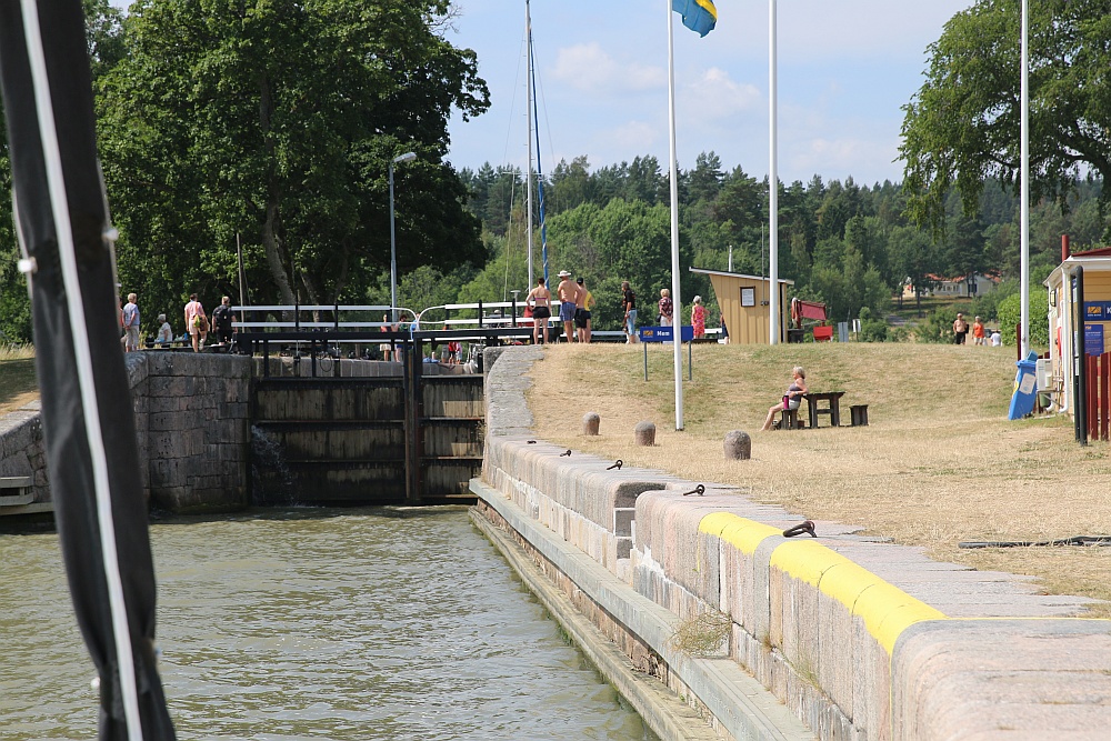 Im Göta-Kanal gilt es 58 Schleusen zu bezwingen. Es ist also ein Bißchen so, als wenn man mit seinem Schiff Treppen steigen würde ;o)