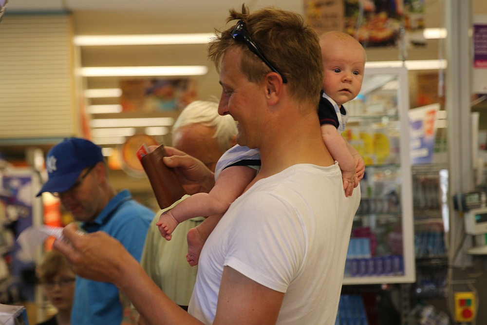 Am Supermarkt können wir natürlich nicht vorbei. Finn findet es dort auch total interessant und passt auf, dass wir auch leckere Sachen einkaufen.