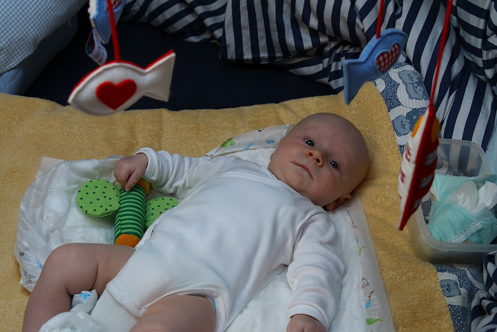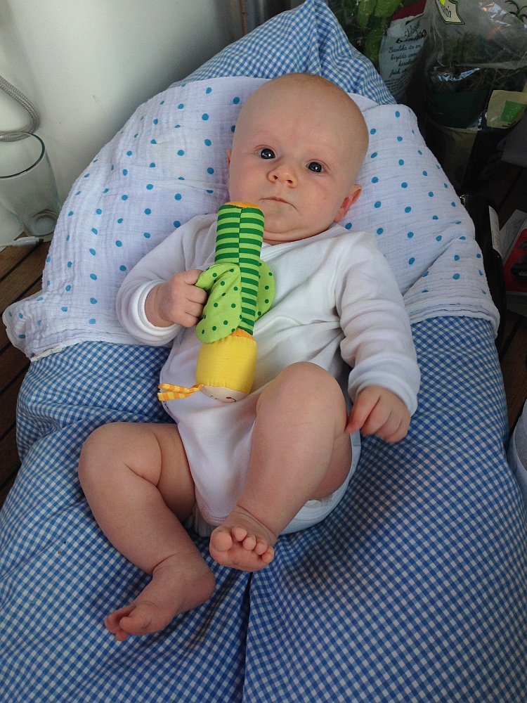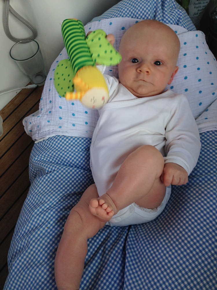 Neues von Finn: Wir haben ihn heute Abend gewogen. Er wiegt jetzt 5,7kg. Mama schleppt also schon ein ordentliches Gewicht, wenn sie Finn bei den Schleusen immer die Berge hochträgt ;o)