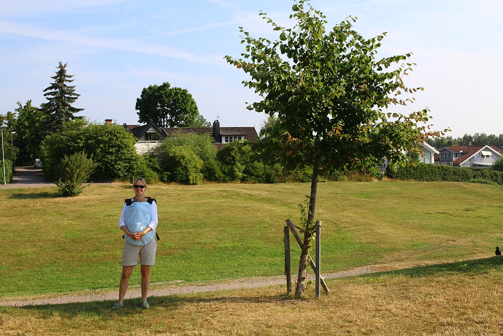 Mit der Ansage „Es geht los jetzt“ habe ich schnell Finn in die Manduca genommen und schwubs waren wir in der ersten Schleuse. Schon am frühen Morgen mussten wir uns vor der Sonne verstecken, daher suchen ich während des Schleusenvorgangs Schatten unter einem Baum.