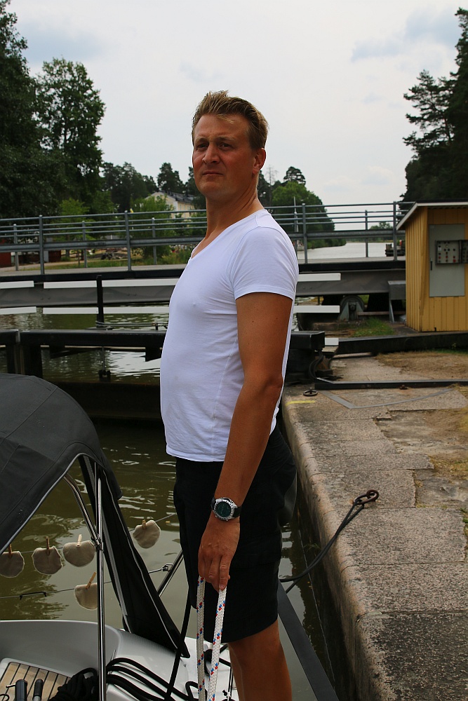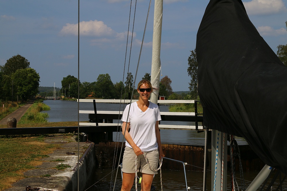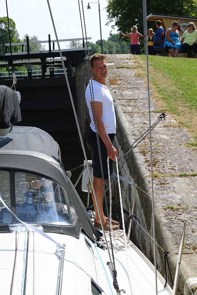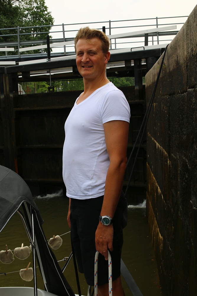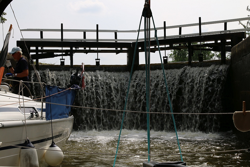 Damit haben wir wieder die benötigte Herausforderung beim Schleusen, denn wir müssen das Boot möglichst schnell vertäuen, damit einer von uns beide Leinen bedienen und der andere Finn auf den Arm nehmen kann.