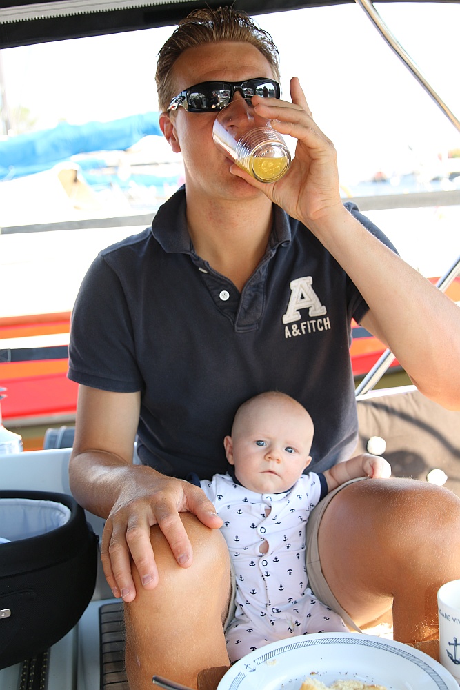 Zunächst wird aber im Schatten der Kuchenbude gefrühstückt. Heute sitzt Finn bei Lars und er ist mächtig stolz, denn er darf wie ein Großer auf der Bank sitzen ;o)