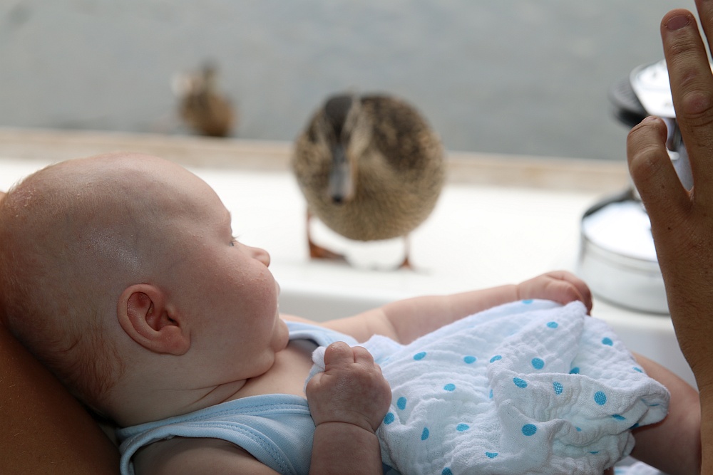 Finn und Lars haben ganz verdattert geguckt, als die Ente so dicht bei ihnen vorbei geschaut hat…