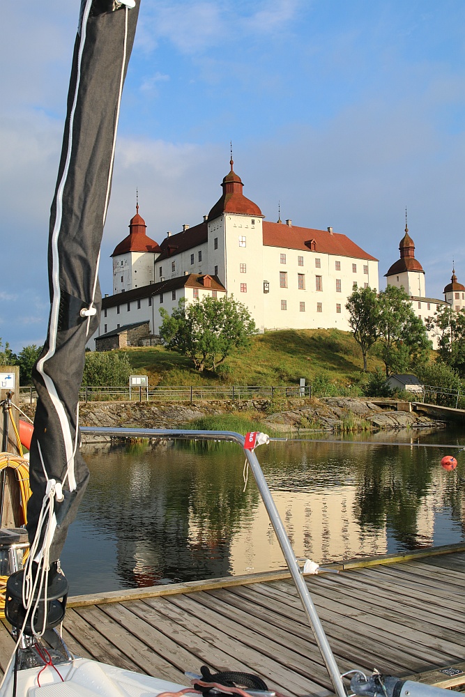 Langsam ziehen ein paar Wolken auf. Wir erreichen Läckö, der Hafen liegt direkt vorm Schloss, aber noch trocken.