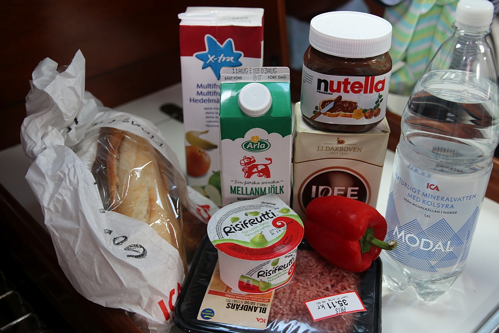 Wir haben jetzt neue Kräuter an Bord und eine Menge anderer Lebensmittel. Milch, Joghurt und frische Sachen, da ich immer Vitamine für Finn und mich einfordere –