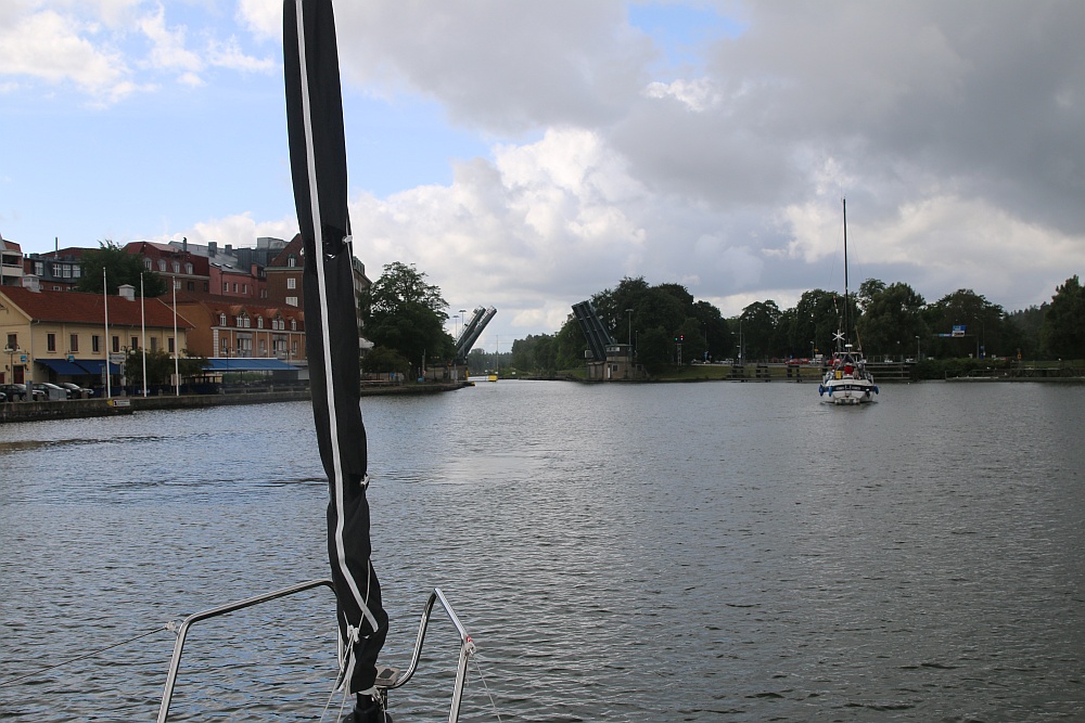Um 10:30h starten wir dann als wir hören, dass die Brücke direkt bei uns vorm Hafen geöffnet wird.