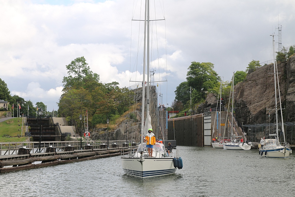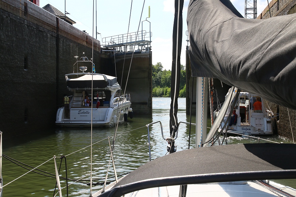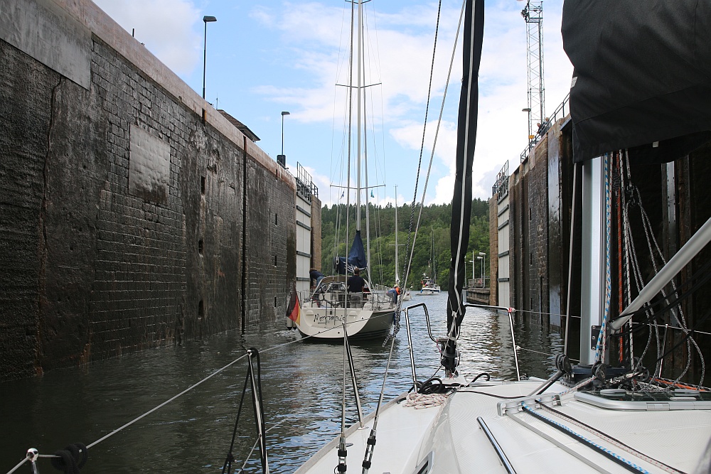 Insgesamt vier Schleusenkammern mit einem deutlich größeren Hub als beim Göta-Kanal.