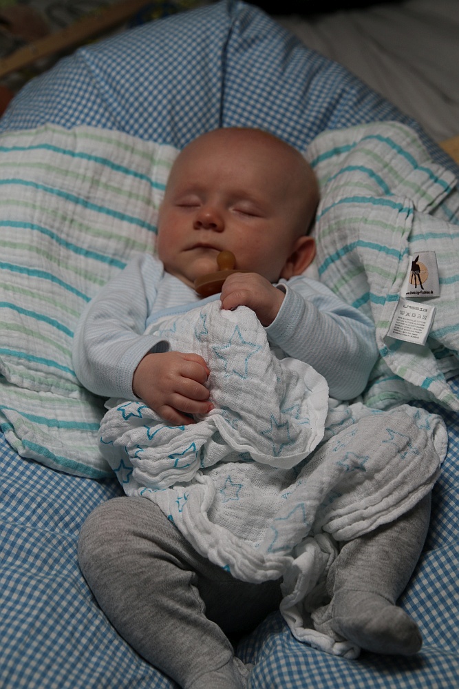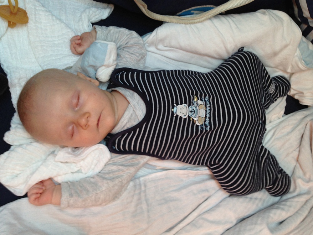 Finn hält sich auch an den Wunsch und schläft herrlich bis 8h am Morgen. *tolles Baby*