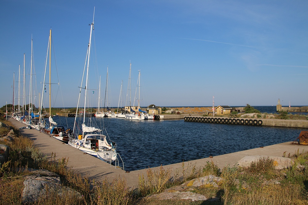 Der Hafen – ein Tipp von Nils *Danke!* – sieht aus, als wenn er genau unseren Geschmack trifft. Leider ist er bereits so voll, dass uns der Hafenmeister keinen Platz mehr anbieten kann. Es gäbe die Möglichkeit bis 17:45h Kreise zu drehen, denn dann legt die letzte Fähre ab und hinterlässt freie Plätze für die Nacht. Wir entscheiden uns gegen diese Option und fahren weiter.