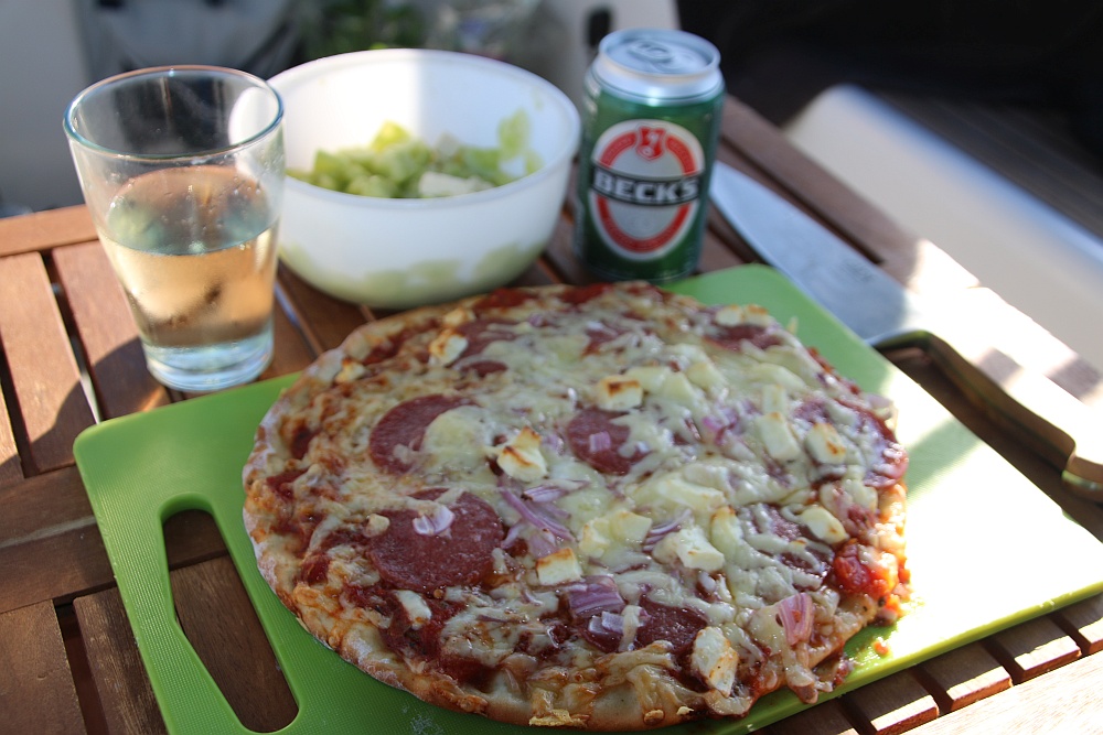 Freitag wir ein Hafentag. Es ist kein so schönes Wetter angesagt, dennoch kommt morgens die Sonne raus und wir können den Tag richtig genießen, inkl. eines 12-Uhr-Bierchens in der neuen außen „Chill-out-lounge“ mit den Kindern.