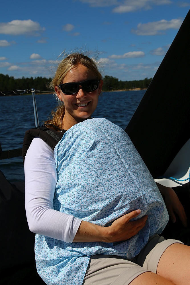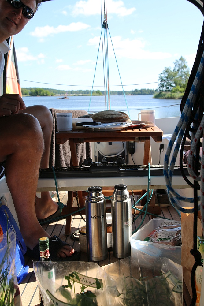 Wir fahren zwar Heute noch etwas durch die Schären, aber dann sind wir auch froh wieder auf die offene Ostsee zu kommen. Das Schärensegeln – so sehr wir es auch lieben – ist mit Baby etwas anstrengender als bisher. Da ich mich um Finn kümmere und dadurch immer mal wieder unter Deck bin, muss Lars häufig an Deck alles allein machen. D.h. Segel trimmen, steuern und navigieren. In den Schären ist die Navigation jedoch deutlich anspruchsvoller, so dass ein zweiter Mann/ Frau an Deck nicht schlecht wäre.