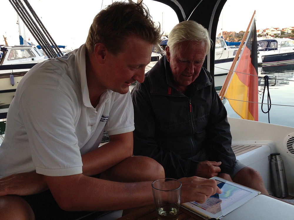 Schnell muss ein neuer Plan her. Lars stellt sich dieser Aufgabe allein, da Finn lautstark sein Essen einfordert. Die Auswahl treffen wir dennoch gemeinsam. Lars stellt mir die  möglichen Alternativ-Häfen vor und wir entscheiden uns für Donsö. D.h. wir cruisen noch etwas durch die Schären.