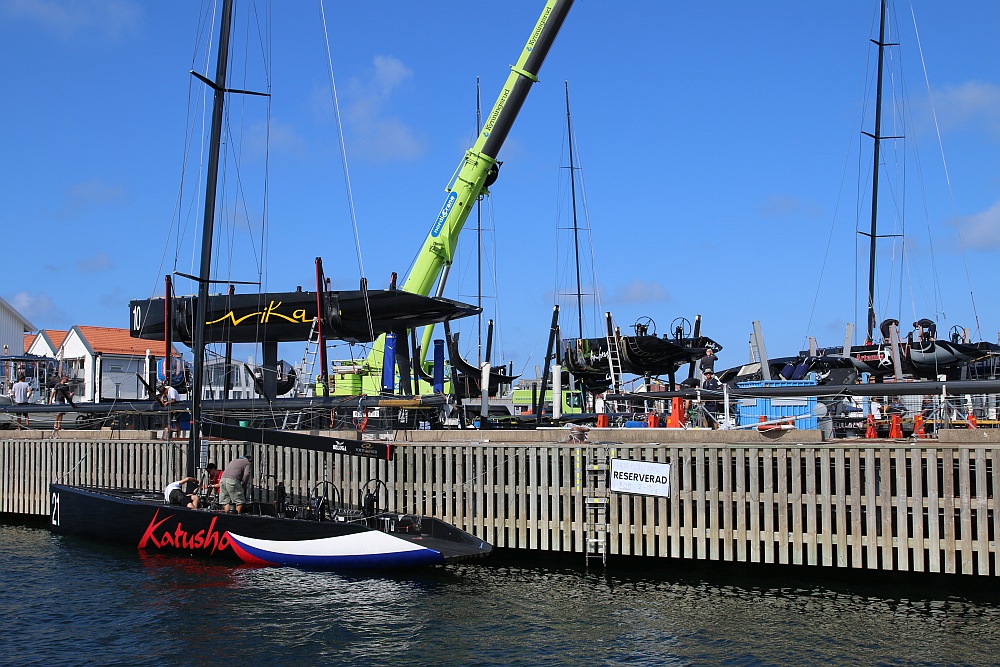 In Marstrand findet nächste Woche die Meisterschaft der RC44 statt. Die Vorbereitungen laufen. Die Schiffe sehen klasse aus: